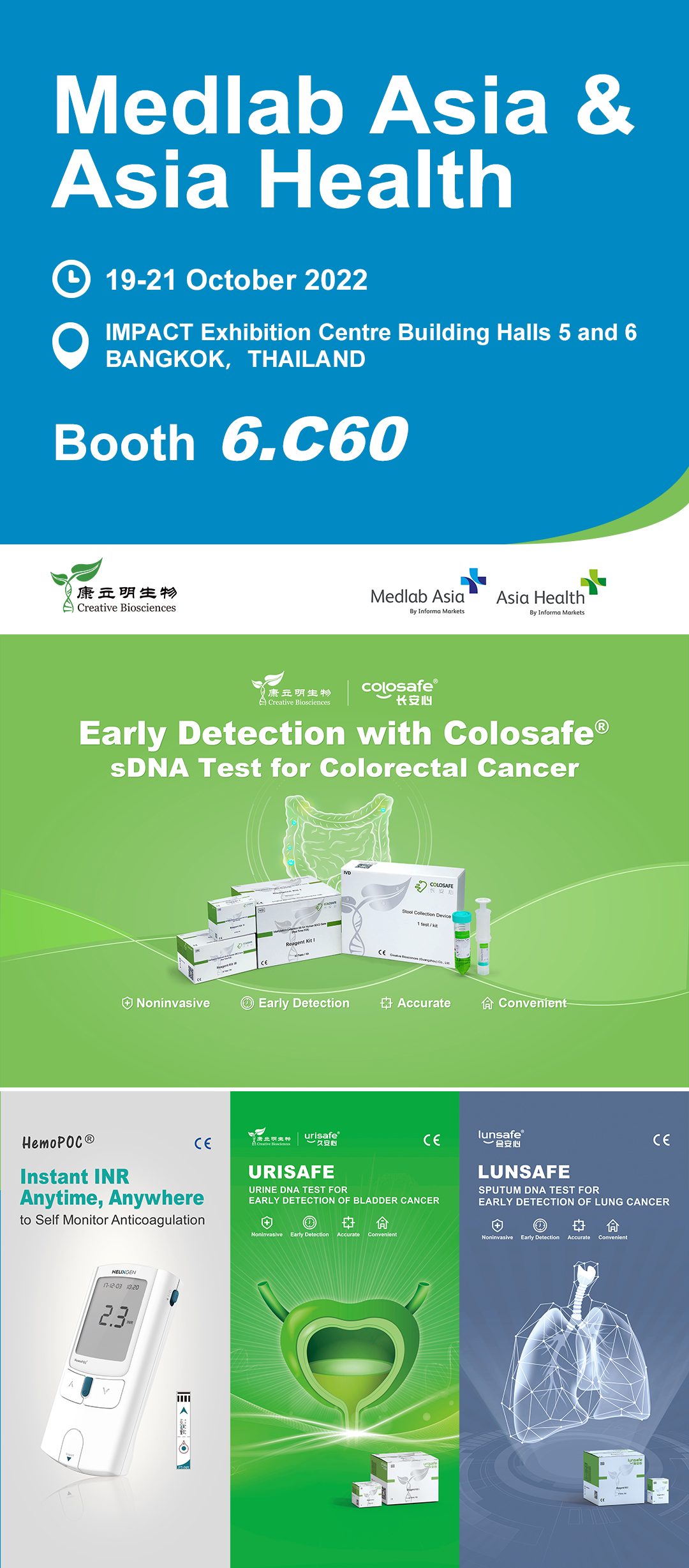 本次盛會,康立明生物將攜長安心®糞便DNA腸癌檢測、久安心®膀胱癌基因檢測、會安心®肺癌基因檢測、全自動樣本預處理儀以及康立明全資子公司好芝生物產(chǎn)品HemoPOC®凝血檢測系統(tǒng)赴展。