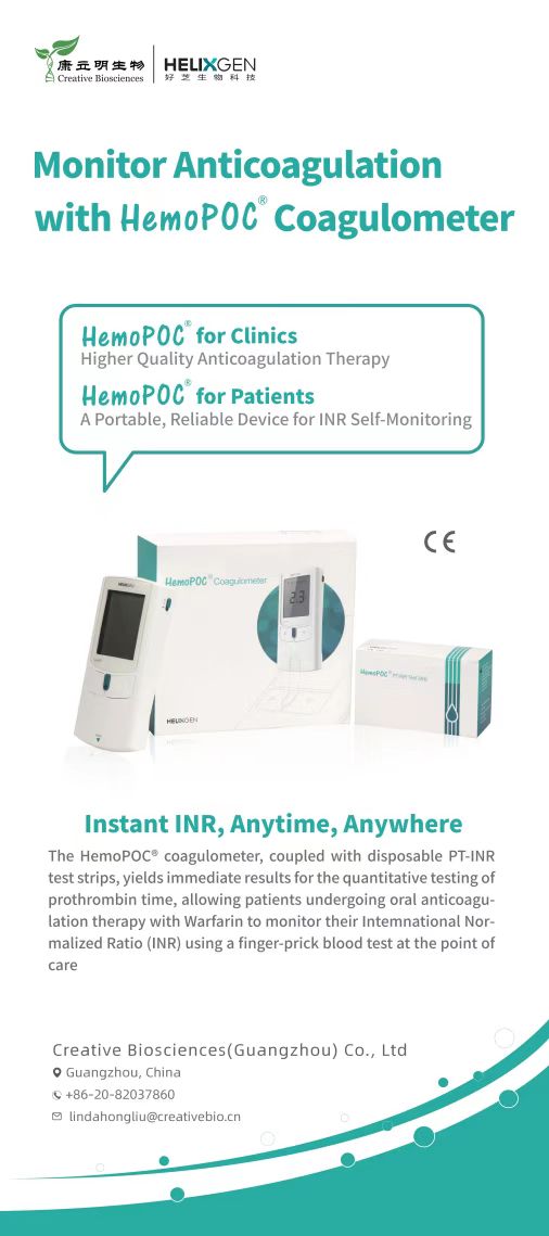 此外,康立明全資子公司好芝生物產(chǎn)品HemoPOC®凝血檢測系統(tǒng)也將亮相此次盛會。HemoPOC®凝血檢測儀是一款便攜式凝血檢測設(shè)備,與配套的檢測卡組成。HemoPOC®凝血檢測系統(tǒng),用于定量測定新鮮指尖毛細血管血的凝血酶原時間。該系統(tǒng)操作簡單,滿足即時檢測及床旁檢測的應(yīng)用需求,增強抗凝管理和慢病管理的有效性。