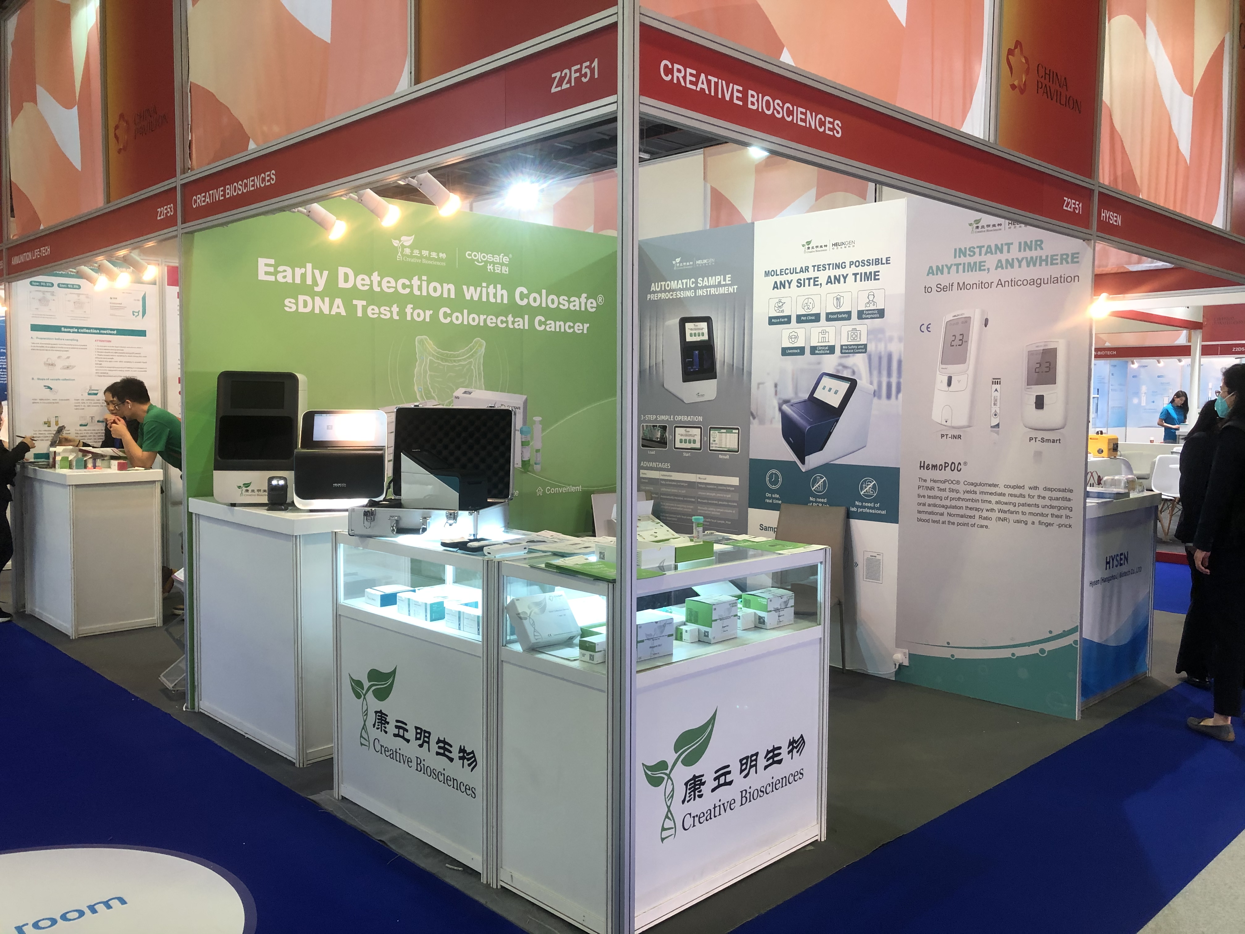 本次盛會(huì),康立明生物攜長(zhǎng)安心®糞便DNA腸癌檢測(cè)、久安心®膀胱癌基因檢測(cè)、會(huì)安心®肺癌基因檢測(cè)、全自動(dòng)樣本預(yù)處理儀以及康立明全資子公司好芝生物產(chǎn)品HelixPOC®全自動(dòng)微流控?zé)晒?/span>PCR一體機(jī)、HemoPOC®凝血檢測(cè)系統(tǒng)赴展。