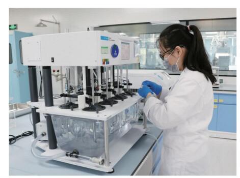 眾生睿創(chuàng)被黃埔區(qū)評為潛在獨(dú)角獸企業(yè),并入選首屆粵港澳大灣區(qū)新經(jīng)濟(jì)先鋒企業(yè) 50 強(qiáng)。圖為科研工作者在操作自動取樣溶出儀。張玉榮 / 攝